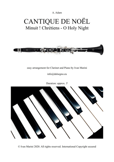 Clarinet,Piano - Level 3 - Digital Download SKU: A0.923810 Composed by Adolphe-Charles Adam. Arranged by Marcus Hatfield. Christian,Christmas,Concert,Romantic Period. Score and part. 10 pages. Marcus Hatfield #2893665. Published by Marcus Hatfield (A0.923810). This is an intermediate-level arrangement of "O Holy Night" for B-flat clarinet and piano. The arranger, being a clarinetist himself, wants to demonstrate the many sonic color palettes the clarinet has to offer. Not only is it an enjoyable piece for the audience and performers, it is an excellent educational opportunity for a young clarinetist. It can help a young player be more confident in using great air support for long, singing phrases, especially in the high registers. Lastly, this arrangement is designed to allow the player to add their own unique expression, and let them really sing in the passionate moments. This product was created by a member of ArrangeMe, Hal Leonard's global self-publishing community of independent composers, arrangers, and songwriters. ArrangeMe allows for the publication of unique arrangements of popular titles and original compositions from a variety of voices and backgrounds. The length, difficulty, and retail pricing are determined solely by the discretion of the person who arranged or composed it. About Digital Downloads Digital Downloads are downloadable sheet music files that can be viewed directly on your computer, tablet or mobile device. Once you download your digital sheet music, you can view and print it at home, school, or anywhere you want to make music, and you don’t have to be connected to the internet. Just purchase, download and play! PLEASE NOTE: Your Digital Download will have a watermark at the bottom of each page that will include your name, purchase date and number of copies purchased. You are only authorized to print the number of copies that you have purchased. You may not digitally distribute or print more copies than purchased for use (i.e., you may not print or digitally distribute individual copies to friends or students).