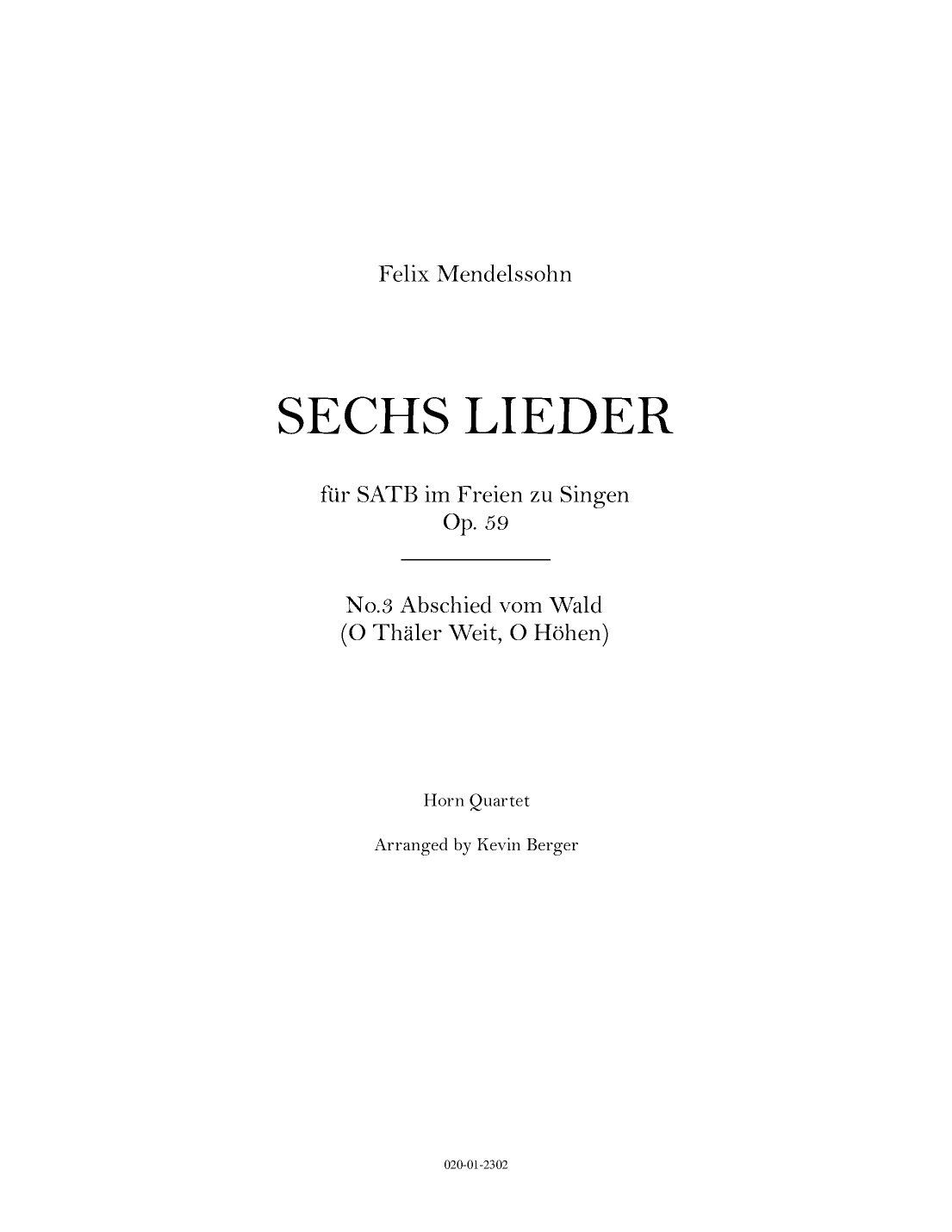 O Thäler Weit, O Höhen (arr. Kevin Berger)