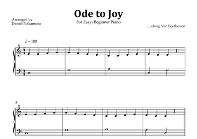 Easy Piano - Level 1 - Digital Download SKU: A0.1148203 Composed by Ludwig van Beethoven. Arranged by Digital Book Music. Classical. Score. 1 pages. Digital Book Music #748373. Published by Digital Book Music (A0.1148203). Ode To Joy - Ludwig Van Beethoven (Piano). This product was created by a member of ArrangeMe, Hal Leonard’s global self-publishing community of independent composers, arrangers, and songwriters. ArrangeMe allows for the publication of unique arrangements of both popular titles and original compositions from a wide variety of voices and backgrounds. About Digital Downloads Digital Downloads are downloadable sheet music files that can be viewed directly on your computer, tablet or mobile device. Once you download your digital sheet music, you can view and print it at home, school, or anywhere you want to make music, and you don’t have to be connected to the internet. Just purchase, download and play! PLEASE NOTE: Your Digital Download will have a watermark at the bottom of each page that will include your name, purchase date and number of copies purchased. You are only authorized to print the number of copies that you have purchased. You may not digitally distribute or print more copies than purchased for use (i.e., you may not print or digitally distribute individual copies to friends or students).