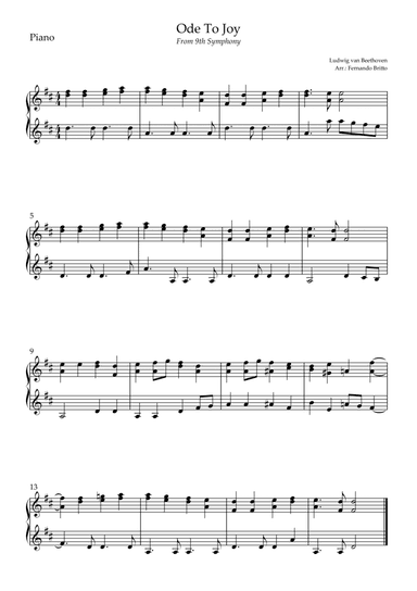 Ode To Joy (from Beethoven's 9th Symphony) for Piano Solo (arr. Fernando Britto)