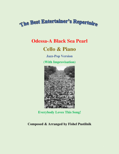 Cello,Piano - Level 4 - Digital Download SKU: A0.635632 Composed by Fishel Pustilnik. Arranged by Fishel Pustilnik. Film/TV,Jazz,Jewish,Pop. Score and part. 9 pages. F & N Enterprise #5709041. Published by F & N Enterprise (A0.635632). Piano Background Track of famous song "Odessa-A Black Sea Pearl" for Cello and Piano The video for Violin and Piano: https://youtu.be/slr_kUC8JYU "Plus" Version at SMP: S0.762535 The composition is easy to read, fun to play and sound professional when performed. Arranged by Fishel Pustilnik, very well known as Composer/Publisher. His books "Jazz & Pop Piano Paradise" (Volumes 1-5) have become a commercial success and a hit with music teachers and students in Canada. (Thousands of books already sold in Canada). They are also starting to enter the US, Brazil, Norway, Russia, Holland, Israel, Belgium, Sweden, Finland, Greece, Latvia, and the UK markets. "This is a wonderful new publication. These pieces offer much appeal for the young pianist and excellent choice for a supplementary book for students from Grade 3 to 8." Lore Ruschiensky, Editor, (from the review in "The Canadian Music Teacher") "Yesterday I spent at least two pleasure-filled hours playing through your imaginatively inventive compositions. Congratulations! I trust students will decide to program your well crafted and entertaining works on recitals and examinations." Review from Dr. Jack Behrens, B.Sc. (Julliard), Ph.D. (Harvard), Director of Academic Studies, The Glenn Gould School "I liked this book the best so far. Great work! You have a gift for melody and your arrangements are very playable. Congratulations on the 3rd Volume". Mark Carlstein, Hal Leonard, Keyboard Publications. Additional Information regarding my arrangements at SheetMusicPlus: https://www.facebook.com/arrangementsofsheetmusic/ This product was created by a member of ArrangeMe, Hal Leonard's global self-publishing community of independent composers, arrangers, and songwriters. ArrangeMe allows for the publication of unique arrangements of popular titles and original compositions from a variety of voices and backgrounds. The length, difficulty, and retail pricing are determined solely by the discretion of the person who arranged or composed it. About Digital Downloads Digital Downloads are downloadable sheet music files that can be viewed directly on your computer, tablet or mobile device. Once you download your digital sheet music, you can view and print it at home, school, or anywhere you want to make music, and you don’t have to be connected to the internet. Just purchase, download and play! PLEASE NOTE: Your Digital Download will have a watermark at the bottom of each page that will include your name, purchase date and number of copies purchased. You are only authorized to print the number of copies that you have purchased. You may not digitally distribute or print more copies than purchased for use (i.e., you may not print or digitally distribute individual copies to friends or students).