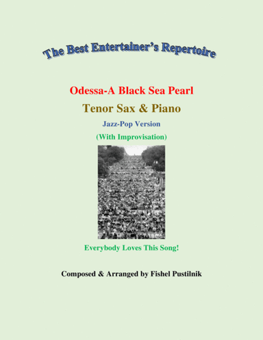 Instrumental Duet,Piano Instrumental Duet,Piano,Soprano Saxophone,Tenor Saxophone - Level 4 - Digital Download SKU: A0.635629 Composed by Fishel Pustilnik. Arranged by Fishel Pustilnik. Film/TV,Jazz,Jewish,Pop. Score and parts. 9 pages. F & N Enterprise #5709021. Published by F & N Enterprise (A0.635629). Piano Background Track of famous song "Odessa-A Black Sea Pearl" for Tenor Sax and Piano The video for Violin and Piano: https://youtu.be/slr_kUC8JYU "Plus" Version at SMP: S0.762227 The composition is easy to read, fun to play and sound professional when performed. Arranged by Fishel Pustilnik, very well known as Composer/Publisher. His books "Jazz & Pop Piano Paradise" (Volumes 1-5) have become a commercial success and a hit with music teachers and students in Canada. (Thousands of books already sold in Canada). They are also starting to enter the US, Brazil, Norway, Russia, Holland, Israel, Belgium, Sweden, Finland, Greece, Latvia, and the UK markets. "This is a wonderful new publication. These pieces offer much appeal for the young pianist and excellent choice for a supplementary book for students from Grade 3 to 8." Lore Ruschiensky, Editor, (from the review in "The Canadian Music Teacher") "Yesterday I spent at least two pleasure-filled hours playing through your imaginatively inventive compositions. Congratulations! I trust students will decide to program your well crafted and entertaining works on recitals and examinations." Review from Dr. Jack Behrens, B.Sc. (Julliard), Ph.D. (Harvard), Director of Academic Studies, The Glenn Gould School "I liked this book the best so far. Great work! You have a gift for melody and your arrangements are very playable. Congratulations on the 3rd Volume". Mark Carlstein, Hal Leonard, Keyboard Publications. Additional Information regarding my arrangements at SheetMusicPlus: https://www.facebook.com/arrangementsofsheetmusic/ This product was created by a member of ArrangeMe, Hal Leonard’s global self-publishing community of independent composers, arrangers, and songwriters. ArrangeMe allows for the publication of unique arrangements of both popular titles and original compositions from a wide variety of voices and backgrounds. About Digital Downloads Digital Downloads are downloadable sheet music files that can be viewed directly on your computer, tablet or mobile device. Once you download your digital sheet music, you can view and print it at home, school, or anywhere you want to make music, and you don’t have to be connected to the internet. Just purchase, download and play! PLEASE NOTE: Your Digital Download will have a watermark at the bottom of each page that will include your name, purchase date and number of copies purchased. You are only authorized to print the number of copies that you have purchased. You may not digitally distribute or print more copies than purchased for use (i.e., you may not print or digitally distribute individual copies to friends or students).