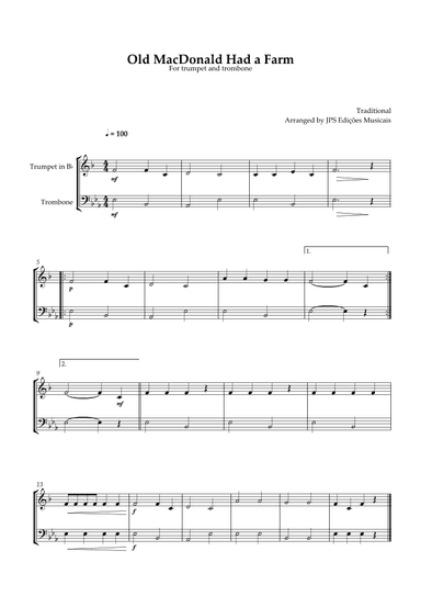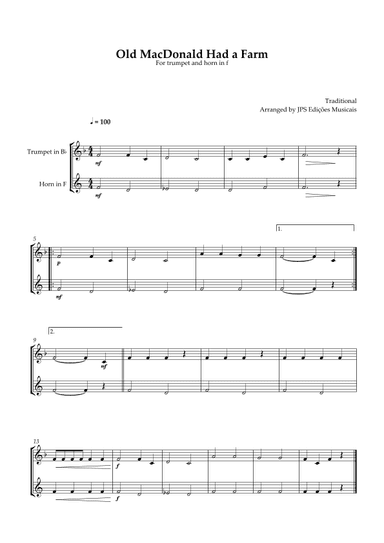 Old MacDonald Had A Farm for piano and trumpet (arr. JPS Edições Musicais)