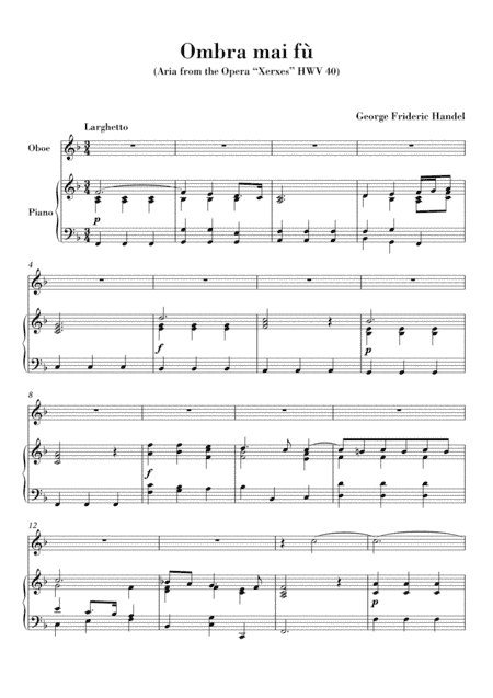 Ombra mai fu (for Oboe and Piano) (arr. Ahiva Editions)