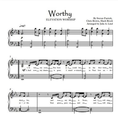 Digital sheet music for piano, (beginner).Publisher: Hal LeonardContributors to this music title:Chris Brown (writer)Mack Brock (writer)Steven Furtick (writer)Wade Joye (writer)This item includes: PDF (digital sheet music to download and print)Instrumentation:piano soloSkill Level:beginnerGenre:christian, contemporary, sacred, praise & worship, childrenPages:2
