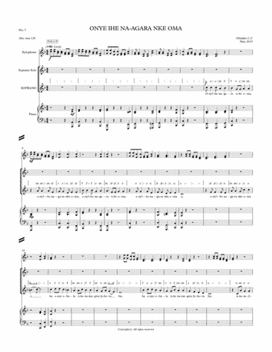 Choral Choir (Mixed) - Digital Download SKU: A0.1011034 Composed by Chidi Obijiaku. Wedding. Octavo. 12 pages. Obijiaku C.C #5726949. Published by Obijiaku C.C (A0.1011034). Blessed is everyone who fears the Lord. A sacred Igbo (Nigerian) anthem based on Psalm 128. This product was created by a member of ArrangeMe, Hal Leonard's global self-publishing community of independent composers, arrangers, and songwriters. ArrangeMe allows for the publication of unique arrangements of popular titles and original compositions from a variety of voices and backgrounds. The length, difficulty, and retail pricing are determined solely by the discretion of the person who arranged or composed it. About Digital Downloads Digital Downloads are downloadable sheet music files that can be viewed directly on your computer, tablet or mobile device. Once you download your digital sheet music, you can view and print it at home, school, or anywhere you want to make music, and you don’t have to be connected to the internet. Just purchase, download and play! PLEASE NOTE: Your Digital Download will have a watermark at the bottom of each page that will include your name, purchase date and number of copies purchased. You are only authorized to print the number of copies that you have purchased. You may not digitally distribute or print more copies than purchased for use (i.e., you may not print or digitally distribute individual copies to friends or students).