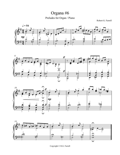 Small Ensemble - Digital Download SKU: A0.926640 Composed by Robert G. Farrell. Contemporary. Score and parts. 1 pages. Robert G Farrell #6715859. Published by Robert G Farrell (A0.926640). This product was created by a member of ArrangeMe, Hal Leonard’s global self-publishing community of independent composers, arrangers, and songwriters. ArrangeMe allows for the publication of unique arrangements of both popular titles and original compositions from a wide variety of voices and backgrounds. About Digital Downloads Digital Downloads are downloadable sheet music files that can be viewed directly on your computer, tablet or mobile device. Once you download your digital sheet music, you can view and print it at home, school, or anywhere you want to make music, and you don’t have to be connected to the internet. Just purchase, download and play! PLEASE NOTE: Your Digital Download will have a watermark at the bottom of each page that will include your name, purchase date and number of copies purchased. You are only authorized to print the number of copies that you have purchased. You may not digitally distribute or print more copies than purchased for use (i.e., you may not print or digitally distribute individual copies to friends or students).