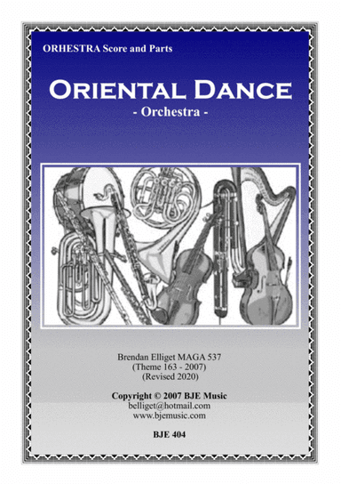 Full Orchestra - Level 3 - Digital Download SKU: A0.750962 Composed by Brendan Elliget MAGA 537. Contemporary. Score and parts. 65 pages. BJE Music #5324057. Published by BJE Music (A0.750962). This is an original composition for Orchestra was written in 2007 - then expanded and revised in 2020. It has an Oriental flavor with rhythmic percussion, pizzicato string parts and often a sustained bassline…Elements of a pentatonic scale.The MP3 was recorded with NotePerformer 3Grade = 4 Duration = 3:30 mins. This product was created by a member of ArrangeMe, Hal Leonard's global self-publishing community of independent composers, arrangers, and songwriters. ArrangeMe allows for the publication of unique arrangements of popular titles and original compositions from a variety of voices and backgrounds. The length, difficulty, and retail pricing are determined solely by the discretion of the person who arranged or composed it. About Digital Downloads Digital Downloads are downloadable sheet music files that can be viewed directly on your computer, tablet or mobile device. Once you download your digital sheet music, you can view and print it at home, school, or anywhere you want to make music, and you don’t have to be connected to the internet. Just purchase, download and play! PLEASE NOTE: Your Digital Download will have a watermark at the bottom of each page that will include your name, purchase date and number of copies purchased. You are only authorized to print the number of copies that you have purchased. You may not digitally distribute or print more copies than purchased for use (i.e., you may not print or digitally distribute individual copies to friends or students).