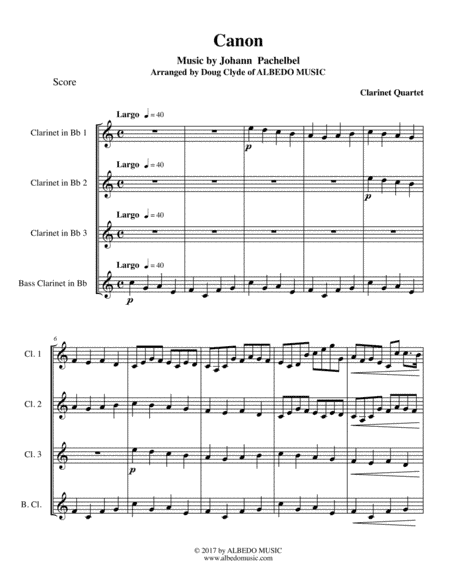 Pachelbel's Canon for Clarinet Quartet (arr. Doug Clyde)