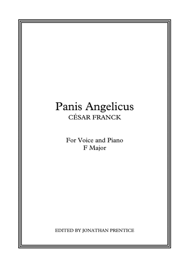 Vocal Solo,Voice - Digital Download SKU: A0.856835 Composed by Ceasar Frank. Arranged by Change the Key. Romantic Period,Sacred. 5 pages. Change the Key #3096245. Published by Change the Key (A0.856835). Panis Angelicus transposed to F Major for voice and piano. Vocal range F - D. Also available with a shorter introduction, and also as a two part choral arrangement. This product was created by a member of ArrangeMe, Hal Leonard's global self-publishing community of independent composers, arrangers, and songwriters. ArrangeMe allows for the publication of unique arrangements of popular titles and original compositions from a variety of voices and backgrounds. The length, difficulty, and retail pricing are determined solely by the discretion of the person who arranged or composed it. About Digital Downloads Digital Downloads are downloadable sheet music files that can be viewed directly on your computer, tablet or mobile device. Once you download your digital sheet music, you can view and print it at home, school, or anywhere you want to make music, and you don’t have to be connected to the internet. Just purchase, download and play! PLEASE NOTE: Your Digital Download will have a watermark at the bottom of each page that will include your name, purchase date and number of copies purchased. You are only authorized to print the number of copies that you have purchased. You may not digitally distribute or print more copies than purchased for use (i.e., you may not print or digitally distribute individual copies to friends or students).