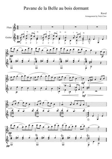 Instrumental Duet Flute,Guitar,Instrumental Duet - Level 3 - Digital Download SKU: A0.940557 Composed by Maurice Ravel. Arranged by Nick Clow. Instructional,Romantic Period,Standards. Score and parts. 1 pages. Nick Clow #3628191. Published by Nick Clow (A0.940557). An arrangement of this piano piece for flute and intermediate classical guitar.The guitar part is roughly Trinity Grade 2. Standard tuning. This product was created by a member of ArrangeMe, Hal Leonard's global self-publishing community of independent composers, arrangers, and songwriters. ArrangeMe allows for the publication of unique arrangements of popular titles and original compositions from a variety of voices and backgrounds. The length, difficulty, and retail pricing are determined solely by the discretion of the person who arranged or composed it. About Digital Downloads Digital Downloads are downloadable sheet music files that can be viewed directly on your computer, tablet or mobile device. Once you download your digital sheet music, you can view and print it at home, school, or anywhere you want to make music, and you don’t have to be connected to the internet. Just purchase, download and play! PLEASE NOTE: Your Digital Download will have a watermark at the bottom of each page that will include your name, purchase date and number of copies purchased. You are only authorized to print the number of copies that you have purchased. You may not digitally distribute or print more copies than purchased for use (i.e., you may not print or digitally distribute individual copies to friends or students).