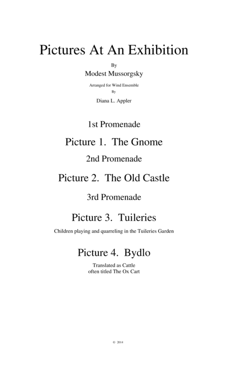 Pictures At An Exhibition 1st Promenade thru Picture 4 (score only) (arr. Diana L. Appler)