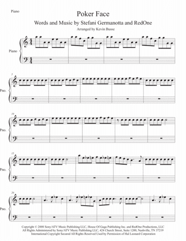 Brass Ensemble - Level 3 - Digital Download SKU: A0.1308330 By Lady Gaga. By RedOne and Stefani Germanotta. Arranged by Dale Vail. Pop. Score and Parts. 18 pages. Dale Vail #897568. Published by Dale Vail (A0.1308330). Arranged for Brass Ensemble (Sextet). Parts in Orchestral and British Band Transpositions.Two Trumpets (Cornets optional!)Horn (F and Eb)Trombone (Bass and Bb Treble)Euphonium (or trombone) (Bass and Bb Treble)Tuba (Bass and Eb Treble)www.dalevail.com. This product was created by a member of ArrangeMe, Hal Leonard’s global self-publishing community of independent composers, arrangers, and songwriters. ArrangeMe allows for the publication of unique arrangements of both popular titles and original compositions from a wide variety of voices and backgrounds. About Digital Downloads Digital Downloads are downloadable sheet music files that can be viewed directly on your computer, tablet or mobile device. Once you download your digital sheet music, you can view and print it at home, school, or anywhere you want to make music, and you don’t have to be connected to the internet. Just purchase, download and play! PLEASE NOTE: Your Digital Download will have a watermark at the bottom of each page that will include your name, purchase date and number of copies purchased. You are only authorized to print the number of copies that you have purchased. You may not digitally distribute or print more copies than purchased for use (i.e., you may not print or digitally distribute individual copies to friends or students).
