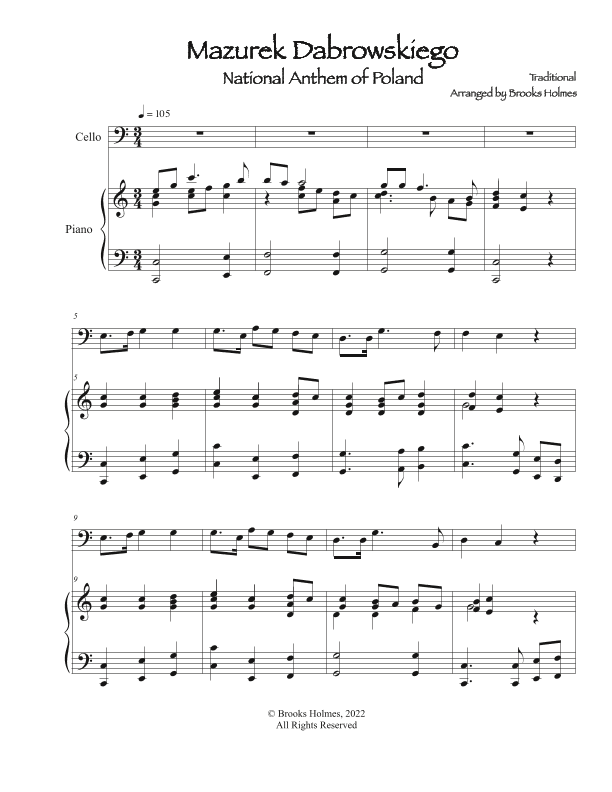 Polish National Anthem - Mazurek Dabrowskiego (Cello & Piano) Poland (arr. Brooks Holmes)