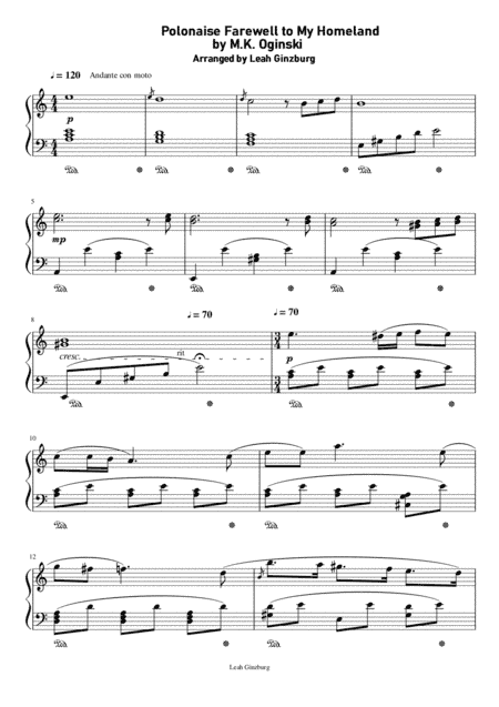 Polonaise Farwell to my homeland by M.K. Oginski (arr. Leah Ginzburg)