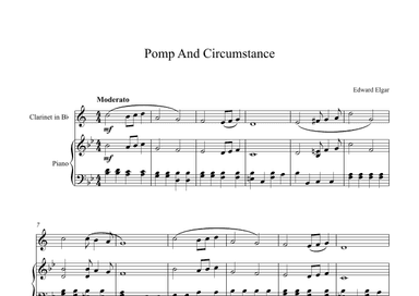 B-Flat Clarinet,Piano - Level 1 - Digital Download SKU: A0.789076 Composed by Edward Elgar. Arranged by Digital Book Music. Classical. Score and part. 1 pages. Digital Book Music #396400. Published by Digital Book Music (A0.789076). Pomp And Circumstance - Edward Elgar (Clarinet + Piano). This product was created by a member of ArrangeMe, Hal Leonard's global self-publishing community of independent composers, arrangers, and songwriters. ArrangeMe allows for the publication of unique arrangements of popular titles and original compositions from a variety of voices and backgrounds. The length, difficulty, and retail pricing are determined solely by the discretion of the person who arranged or composed it. About Digital Downloads Digital Downloads are downloadable sheet music files that can be viewed directly on your computer, tablet or mobile device. Once you download your digital sheet music, you can view and print it at home, school, or anywhere you want to make music, and you don’t have to be connected to the internet. Just purchase, download and play! PLEASE NOTE: Your Digital Download will have a watermark at the bottom of each page that will include your name, purchase date and number of copies purchased. You are only authorized to print the number of copies that you have purchased. You may not digitally distribute or print more copies than purchased for use (i.e., you may not print or digitally distribute individual copies to friends or students).