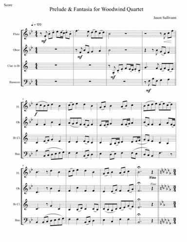 Woodwind Ensemble,Woodwind Quartet - Level 3 - Digital Download SKU: A0.951088 Composed by Jason Sullivann. 20th Century,Instructional. 21 pages. Green Bicycle Music #5742537. Published by Green Bicycle Music (A0.951088). This is an original Prelude and Fantasia for Woodwind Quartet in Neo-Renaissance style. The Fantasia is more of a true free-form Fantasia and does not include as much imitation as my other pieces in this style. This is appropriate for working groups in practically any setting, also for younger groups in school, and even in Church services. This product was created by a member of ArrangeMe, Hal Leonard's global self-publishing community of independent composers, arrangers, and songwriters. ArrangeMe allows for the publication of unique arrangements of popular titles and original compositions from a variety of voices and backgrounds. The length, difficulty, and retail pricing are determined solely by the discretion of the person who arranged or composed it. About Digital Downloads Digital Downloads are downloadable sheet music files that can be viewed directly on your computer, tablet or mobile device. Once you download your digital sheet music, you can view and print it at home, school, or anywhere you want to make music, and you don’t have to be connected to the internet. Just purchase, download and play! PLEASE NOTE: Your Digital Download will have a watermark at the bottom of each page that will include your name, purchase date and number of copies purchased. You are only authorized to print the number of copies that you have purchased. You may not digitally distribute or print more copies than purchased for use (i.e., you may not print or digitally distribute individual copies to friends or students).