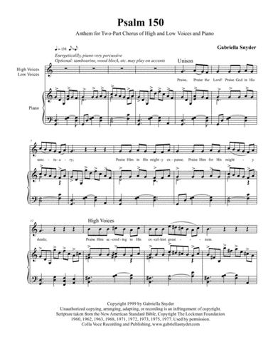 Choral Piano rehearsal, SATB choir I, SATB choir II, soprano voice solo SKU: CF.O5048 Choral Score - Fordouble Chorus of Voices (S.A.T.B.), Coloratura Soprano, and Small Orchestra. Composed by Heinz Werner Zimmermann. Arranged by Edwin Penhorwood. SWS. Part. With Standard notation. Composed 1978. 80 pages. Carl Fischer Music #O5048. Published by Carl Fischer Music (CF.O5048). ISBN 9780825856822. UPC: 798408056827. 6.75 X 10.5 inches.