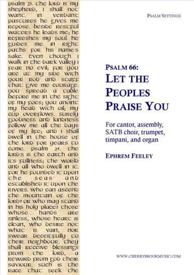 Choral Choir (SATB) - Level 2 - Digital Download SKU: A0.881958 Composed by Ephrem Feeley. Easter,Sacred. Octavo. 7 pages. Cherrybrook Music #5219213. Published by Cherrybrook Music (A0.881958). A strong setting of a text that is often found in the Lectionary and Divine Office makes this an ideal common psalm throughout the year, or as a stately gathering hymn. This product was created by a member of ArrangeMe, Hal Leonard's global self-publishing community of independent composers, arrangers, and songwriters. ArrangeMe allows for the publication of unique arrangements of popular titles and original compositions from a variety of voices and backgrounds. The length, difficulty, and retail pricing are determined solely by the discretion of the person who arranged or composed it. About Digital Downloads Digital Downloads are downloadable sheet music files that can be viewed directly on your computer, tablet or mobile device. Once you download your digital sheet music, you can view and print it at home, school, or anywhere you want to make music, and you don’t have to be connected to the internet. Just purchase, download and play! PLEASE NOTE: Your Digital Download will have a watermark at the bottom of each page that will include your name, purchase date and number of copies purchased. You are only authorized to print the number of copies that you have purchased. You may not digitally distribute or print more copies than purchased for use (i.e., you may not print or digitally distribute individual copies to friends or students).