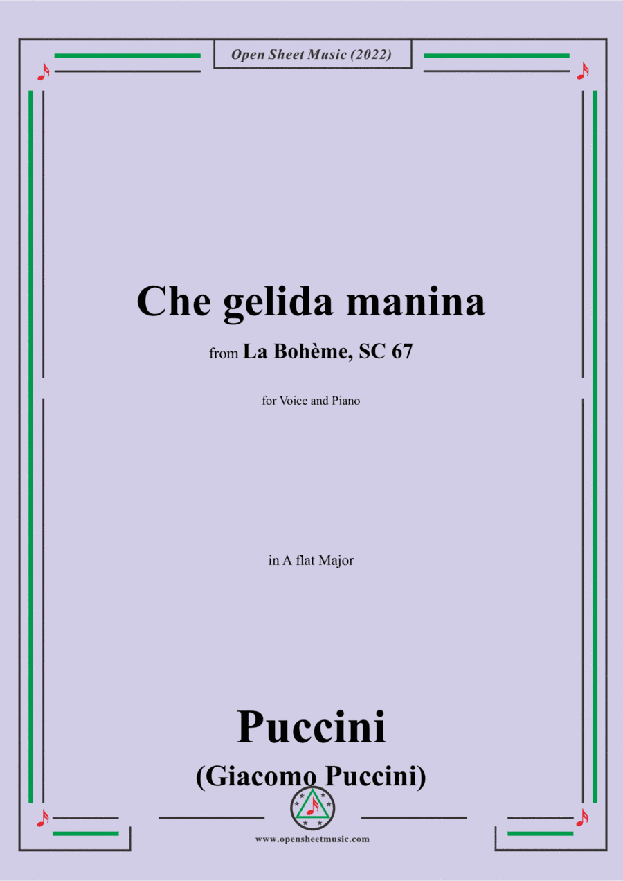 Puccini-Che gelida manina,in A flat Major,from 'La Bohème,SC 67',for Voice and Piano (arr. Open Cloud)