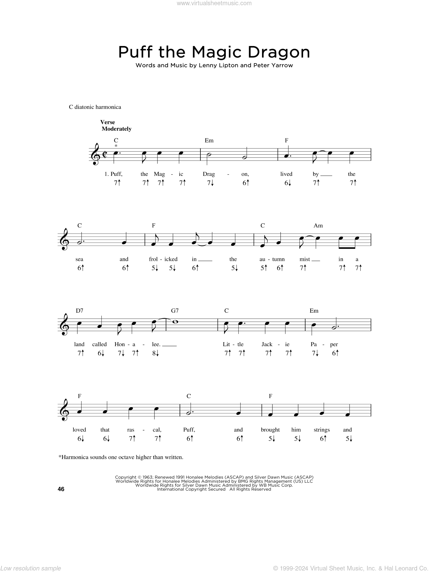 Digital sheet music for harmonica.Publisher: Hal LeonardContributors to this music title:Lenny Lipton (writer)Peter Yarrow (writer)This item includes: PDF (digital sheet music to download and print)Instrumentation:harmonica soloSkill Level:intermediateGenre:children, folk, popPages:2
