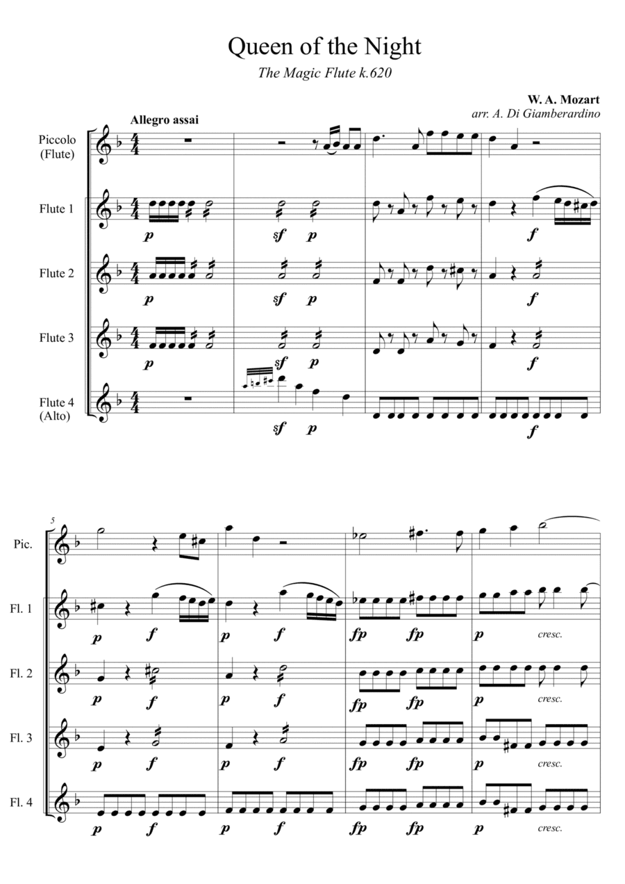 Queen of the Night - Flute Quintet/choir (arr. Antonio Di Giamberardino)