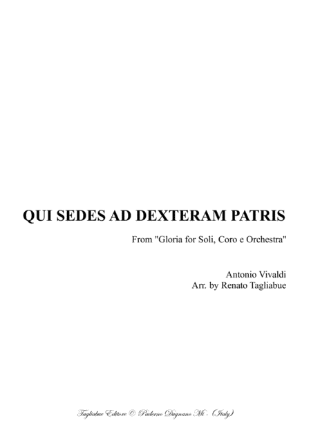 QUI SEDES AD DEXTERAM PATRIS - From "Gloria - RV 589 - Vivaldi" - For Alto and Piano/Organ (arr. Renato Tagliabue)