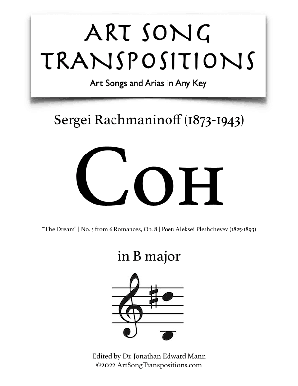 RACHMANINOFF: The Dream, Op. 8 no. 5 (transposed to B major) (arr. ArtSongTranspositions.com)