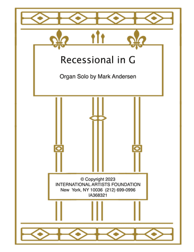 Organ - Level 3 - Digital Download SKU: A0.1308383 By Mark Andersen. By Mark Andersen. Classical,Contest,Festival,Religious,Sacred. Score. 6 pages. International Artists Foundation #897622. Published by International Artists Foundation (A0.1308383). A stately march for organ employing the full organ registration. Suitable for recital work or service playing. This product was created by a member of ArrangeMe, Hal Leonard's global self-publishing community of independent composers, arrangers, and songwriters. ArrangeMe allows for the publication of unique arrangements of popular titles and original compositions from a variety of voices and backgrounds. The length, difficulty, and retail pricing are determined solely by the discretion of the person who arranged or composed it. About Digital Downloads Digital Downloads are downloadable sheet music files that can be viewed directly on your computer, tablet or mobile device. Once you download your digital sheet music, you can view and print it at home, school, or anywhere you want to make music, and you don’t have to be connected to the internet. Just purchase, download and play! PLEASE NOTE: Your Digital Download will have a watermark at the bottom of each page that will include your name, purchase date and number of copies purchased. You are only authorized to print the number of copies that you have purchased. You may not digitally distribute or print more copies than purchased for use (i.e., you may not print or digitally distribute individual copies to friends or students).