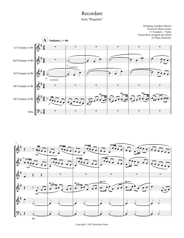 Recordare (from "Requiem") (F) (Brass Sextet - 5 Trp, 1 Tuba) (arr. Regis Bookshar)