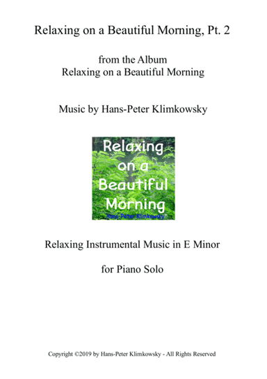 Piano Solo - Level 4 - Digital Download SKU: A0.1013332 Composed by Hans-Peter Klimkowsky. Pop. Score. 7 pages. Hans-Peter Klimkowsky #6247055. Published by Hans-Peter Klimkowsky (A0.1013332). Relaxing Instrumental Music in E Minor for Piano Solo This product was created by a member of ArrangeMe, Hal Leonard’s global self-publishing community of independent composers, arrangers, and songwriters. ArrangeMe allows for the publication of unique arrangements of both popular titles and original compositions from a wide variety of voices and backgrounds. About Digital Downloads Digital Downloads are downloadable sheet music files that can be viewed directly on your computer, tablet or mobile device. Once you download your digital sheet music, you can view and print it at home, school, or anywhere you want to make music, and you don’t have to be connected to the internet. Just purchase, download and play! PLEASE NOTE: Your Digital Download will have a watermark at the bottom of each page that will include your name, purchase date and number of copies purchased. You are only authorized to print the number of copies that you have purchased. You may not digitally distribute or print more copies than purchased for use (i.e., you may not print or digitally distribute individual copies to friends or students).