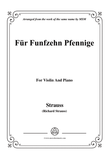 Piano,Violin - Level 3 - Digital Download SKU: A0.663873 Composed by STRAUSS. Arranged by MSM. Classical,Romantic Period. 13 pages. Open Cloud #4313413. Published by Open Cloud (A0.663873). This product(include full and parts score) is a digital sheet music in PDF format. The music was composed by Strauss (Richard Strauss), 1864-1949, arrange by MSM Press, for Violin and Piano, published by More Sheet Music Press. This product was created by a member of ArrangeMe, Hal Leonard's global self-publishing community of independent composers, arrangers, and songwriters. ArrangeMe allows for the publication of unique arrangements of popular titles and original compositions from a variety of voices and backgrounds. The length, difficulty, and retail pricing are determined solely by the discretion of the person who arranged or composed it. About Digital Downloads Digital Downloads are downloadable sheet music files that can be viewed directly on your computer, tablet or mobile device. Once you download your digital sheet music, you can view and print it at home, school, or anywhere you want to make music, and you don’t have to be connected to the internet. Just purchase, download and play! PLEASE NOTE: Your Digital Download will have a watermark at the bottom of each page that will include your name, purchase date and number of copies purchased. You are only authorized to print the number of copies that you have purchased. You may not digitally distribute or print more copies than purchased for use (i.e., you may not print or digitally distribute individual copies to friends or students).