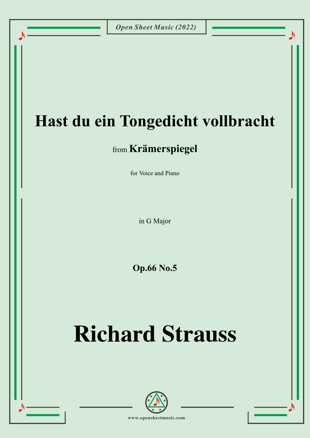 Richard Strauss-Hast du ein Tongedicht vollbracht,in G Major,Op.66 No.5 (arr. OSM Press)