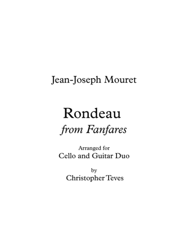 Cello Solo - Level 1 - Digital Download SKU: A0.1034228 Composed by Jean-Joseph Mouret. Arranged by Digital Book Music. Classical. Individual part. 1 pages. Digital Book Music #639567. Published by Digital Book Music (A0.1034228). Rondeau - Jean-Joseph Mouret (Cello). This product was created by a member of ArrangeMe, Hal Leonard's global self-publishing community of independent composers, arrangers, and songwriters. ArrangeMe allows for the publication of unique arrangements of popular titles and original compositions from a variety of voices and backgrounds. The length, difficulty, and retail pricing are determined solely by the discretion of the person who arranged or composed it. About Digital Downloads Digital Downloads are downloadable sheet music files that can be viewed directly on your computer, tablet or mobile device. Once you download your digital sheet music, you can view and print it at home, school, or anywhere you want to make music, and you don’t have to be connected to the internet. Just purchase, download and play! PLEASE NOTE: Your Digital Download will have a watermark at the bottom of each page that will include your name, purchase date and number of copies purchased. You are only authorized to print the number of copies that you have purchased. You may not digitally distribute or print more copies than purchased for use (i.e., you may not print or digitally distribute individual copies to friends or students).