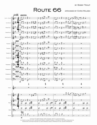 Choral Choir (SATB) - Level 2 - Digital Download SKU: A0.1208134 By Manhattan Transfer. By Bobby Troup. Arranged by Roger Emerson. Blues,Contemporary,Jazz,Standards,Traditional. Octavo. 9 pages. EMERSONGS #806250. Published by EMERSONGS (A0.1208134). This timeless classic is an SATB revoicing of Roger's popular 3-part mixed and 2-part arrangements. Straight ahead swing ala the "Real Book"...a great introduction to 4-part close voiced vocal jazz chords.The scat chorus is written out but may be improvised as desire. Electric or string bass can easily play the walking lines in the left hand of the piano and drums with hi-hat 2&4 and ride cymbal playing quarter note rhythms and/or snaps on 2&4 will lend to the feel. This product was created by a member of ArrangeMe, Hal Leonard’s global self-publishing community of independent composers, arrangers, and songwriters. ArrangeMe allows for the publication of unique arrangements of both popular titles and original compositions from a wide variety of voices and backgrounds. About Digital Downloads Digital Downloads are downloadable sheet music files that can be viewed directly on your computer, tablet or mobile device. Once you download your digital sheet music, you can view and print it at home, school, or anywhere you want to make music, and you don’t have to be connected to the internet. Just purchase, download and play! PLEASE NOTE: Your Digital Download will have a watermark at the bottom of each page that will include your name, purchase date and number of copies purchased. You are only authorized to print the number of copies that you have purchased. You may not digitally distribute or print more copies than purchased for use (i.e., you may not print or digitally distribute individual copies to friends or students).
