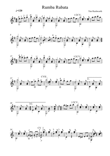Solo Guitar - Level 3 - Digital Download SKU: A0.943115 Composed by Tim Rushworth. Contemporary,Latin,Standards,World. Individual part. 2 pages. Tim Rushworth #4298145. Published by Tim Rushworth (A0.943115). This is an original composition for solo classical guitar. Play with a relaxed Latin feel. This product was created by a member of ArrangeMe, Hal Leonard's global self-publishing community of independent composers, arrangers, and songwriters. ArrangeMe allows for the publication of unique arrangements of popular titles and original compositions from a variety of voices and backgrounds. The length, difficulty, and retail pricing are determined solely by the discretion of the person who arranged or composed it. About Digital Downloads Digital Downloads are downloadable sheet music files that can be viewed directly on your computer, tablet or mobile device. Once you download your digital sheet music, you can view and print it at home, school, or anywhere you want to make music, and you don’t have to be connected to the internet. Just purchase, download and play! PLEASE NOTE: Your Digital Download will have a watermark at the bottom of each page that will include your name, purchase date and number of copies purchased. You are only authorized to print the number of copies that you have purchased. You may not digitally distribute or print more copies than purchased for use (i.e., you may not print or digitally distribute individual copies to friends or students).
