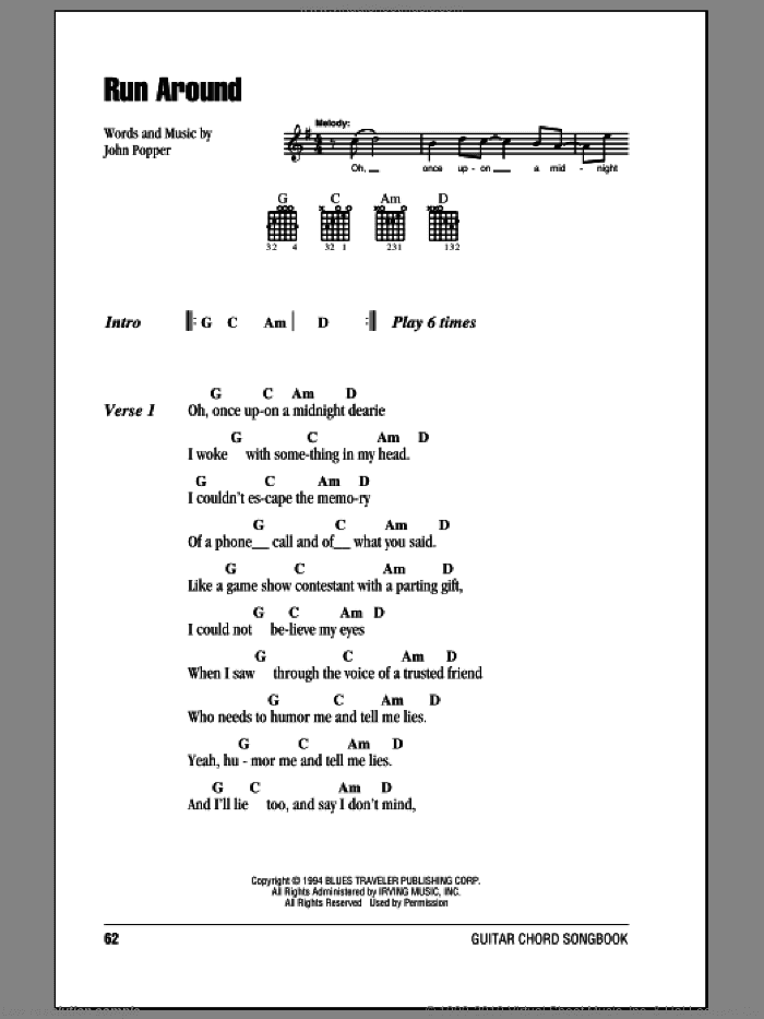 Instantly printable sheet music by Blues Traveler for guitar (chords) of MEDIUM skill level.