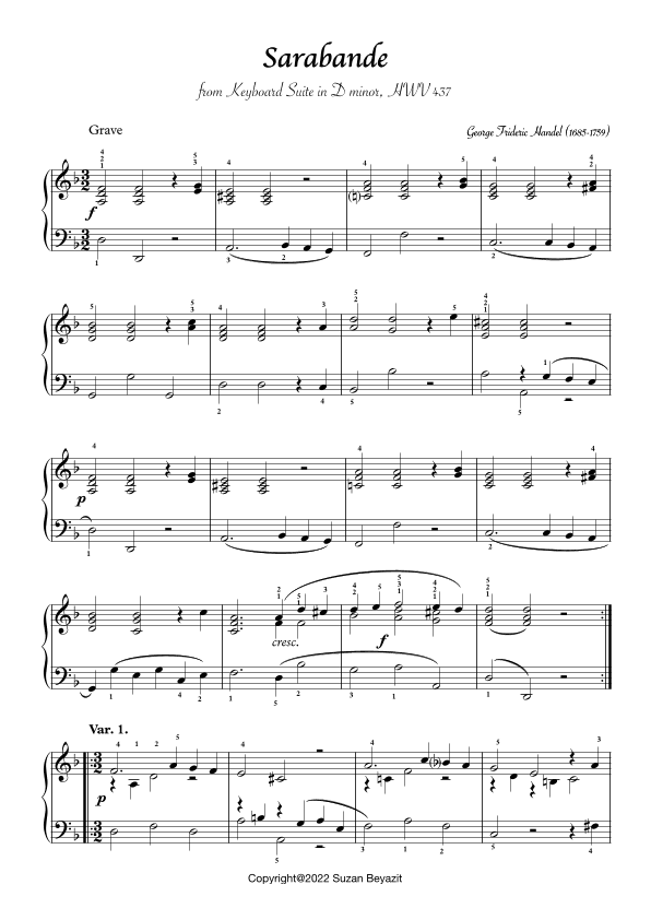 Sarabande ( in D minor) (arr. Suzan Beyazit)