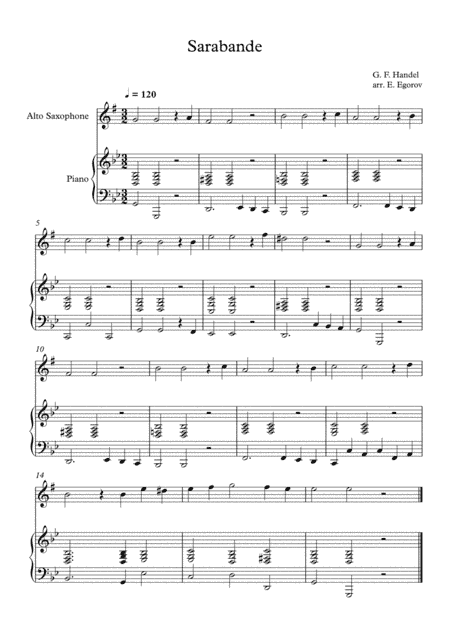 Sarabande, George Frideric Handel, For Alto Saxophone & Piano (arr. Eugene Egorov)