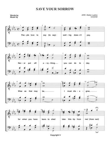 Choral Choir (TTBB) - Level 3 - Digital Download SKU: A0.872015 Composed by Al Sherman and B.G. DeSylva. Arranged by Walter Latzko. Contemporary. Octavo. 5 pages. Latzko Muzic #5732923. Published by Latzko Muzic (A0.872015). IF YOU'RE LOOKING FOR AN INSPIRATION SONG THIS IS THE ONE.  GREAT ARRANGEMENT!!! This product was created by a member of ArrangeMe, Hal Leonard’s global self-publishing community of independent composers, arrangers, and songwriters. ArrangeMe allows for the publication of unique arrangements of both popular titles and original compositions from a wide variety of voices and backgrounds. About Digital Downloads Digital Downloads are downloadable sheet music files that can be viewed directly on your computer, tablet or mobile device. Once you download your digital sheet music, you can view and print it at home, school, or anywhere you want to make music, and you don’t have to be connected to the internet. Just purchase, download and play! PLEASE NOTE: Your Digital Download will have a watermark at the bottom of each page that will include your name, purchase date and number of copies purchased. You are only authorized to print the number of copies that you have purchased. You may not digitally distribute or print more copies than purchased for use (i.e., you may not print or digitally distribute individual copies to friends or students).