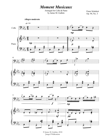 Schubert: Moment Musicaux for Cello & Piano (arr. James M. Guthrie, ASCAP)