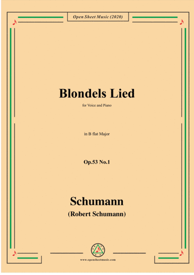 Piano,Vocal,Voice - Level 3 - Digital Download SKU: A0.673715 Composed by Robert Schumann. Arranged by MSM. Classical,Romantic Period. Score. 9 pages. Open Cloud #6029865. Published by Open Cloud (A0.673715). This product is a digital sheet music in PDF format. The music was composed by Schumann(Schumann ),for Voice and Pinao .published by More Sheet Music Press. This product was created by a member of ArrangeMe, Hal Leonard's global self-publishing community of independent composers, arrangers, and songwriters. ArrangeMe allows for the publication of unique arrangements of popular titles and original compositions from a variety of voices and backgrounds. The length, difficulty, and retail pricing are determined solely by the discretion of the person who arranged or composed it. About Digital Downloads Digital Downloads are downloadable sheet music files that can be viewed directly on your computer, tablet or mobile device. Once you download your digital sheet music, you can view and print it at home, school, or anywhere you want to make music, and you don’t have to be connected to the internet. Just purchase, download and play! PLEASE NOTE: Your Digital Download will have a watermark at the bottom of each page that will include your name, purchase date and number of copies purchased. You are only authorized to print the number of copies that you have purchased. You may not digitally distribute or print more copies than purchased for use (i.e., you may not print or digitally distribute individual copies to friends or students).