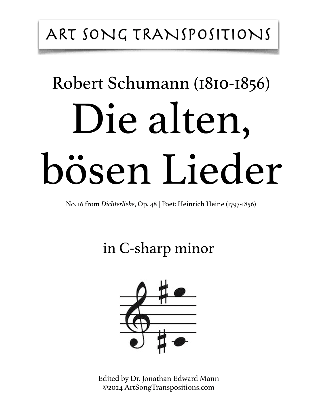 SCHUMANN: Die alten, bösen Lieder, Op. 48 no. 16 (transposed to C-sharp minor) (arr. ArtSongTranspositions.com)
