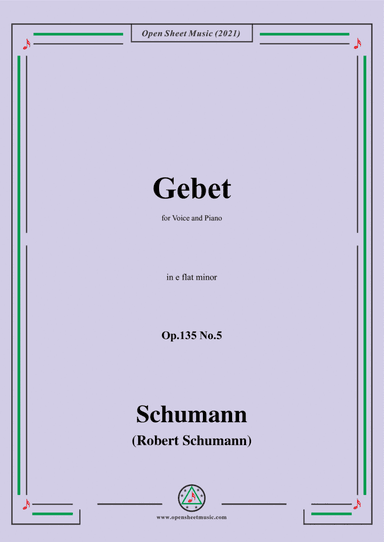 Piano,Vocal,Voice - Level 3 - Digital Download SKU: A0.675144 Composed by Robert Schumann. Arranged by Open Cloud. Classical,Romantic Period. Score. 4 pages. Open Cloud #6615851. Published by Open Cloud (A0.675144). This product is a digital sheet music in PDF format. The music was composed by Schumann(Robert Schumann),1810-1856,for Voice and Piano, published by More Sheet Music Press. This product was created by a member of ArrangeMe, Hal Leonard's global self-publishing community of independent composers, arrangers, and songwriters. ArrangeMe allows for the publication of unique arrangements of popular titles and original compositions from a variety of voices and backgrounds. The length, difficulty, and retail pricing are determined solely by the discretion of the person who arranged or composed it. About Digital Downloads Digital Downloads are downloadable sheet music files that can be viewed directly on your computer, tablet or mobile device. Once you download your digital sheet music, you can view and print it at home, school, or anywhere you want to make music, and you don’t have to be connected to the internet. Just purchase, download and play! PLEASE NOTE: Your Digital Download will have a watermark at the bottom of each page that will include your name, purchase date and number of copies purchased. You are only authorized to print the number of copies that you have purchased. You may not digitally distribute or print more copies than purchased for use (i.e., you may not print or digitally distribute individual copies to friends or students).