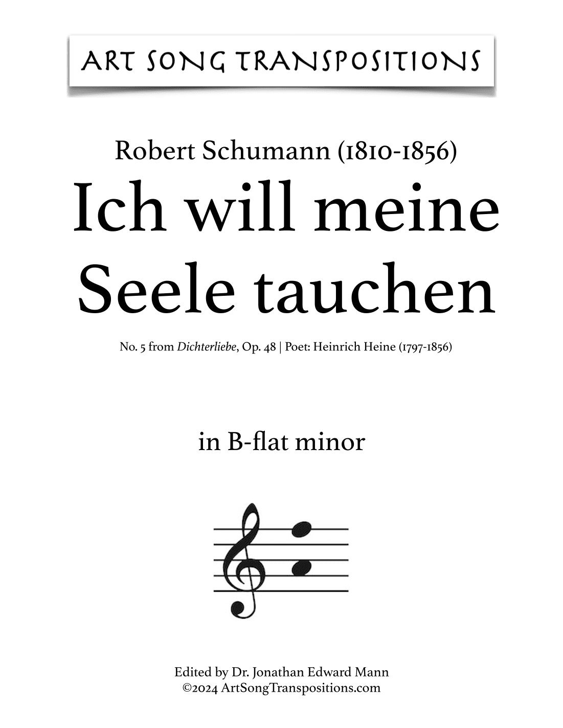 SCHUMANN: Ich will meine Seele tauchen, Op. 48 no. 5 (transposed to B-flat minor) (arr. ArtSongTranspositions.com)