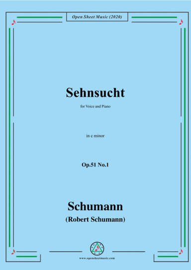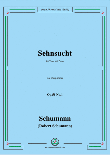 Piano,Vocal,Voice - Level 3 - Digital Download SKU: A0.658926 Composed by Robert Schumann. Arranged by MPS. Romantic Period. Score. 7 pages. Classic Piano sheetz #6293103. Published by Classic Piano sheetz (A0.658926). Schumann-Sehnsucht,Op.51 No.1 in c♯ minor for Voice and Piano. This product was created by a member of ArrangeMe, Hal Leonard’s global self-publishing community of independent composers, arrangers, and songwriters. ArrangeMe allows for the publication of unique arrangements of both popular titles and original compositions from a wide variety of voices and backgrounds. About Digital Downloads Digital Downloads are downloadable sheet music files that can be viewed directly on your computer, tablet or mobile device. Once you download your digital sheet music, you can view and print it at home, school, or anywhere you want to make music, and you don’t have to be connected to the internet. Just purchase, download and play! PLEASE NOTE: Your Digital Download will have a watermark at the bottom of each page that will include your name, purchase date and number of copies purchased. You are only authorized to print the number of copies that you have purchased. You may not digitally distribute or print more copies than purchased for use (i.e., you may not print or digitally distribute individual copies to friends or students).
