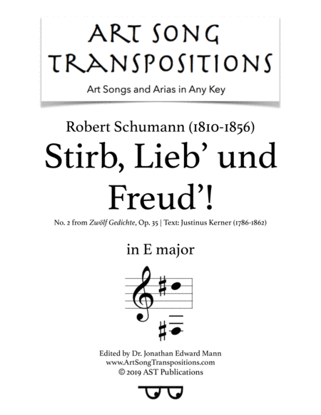 SCHUMANN: Stirb, Lieb' und Freud'! Op. 35 no. 2 (transposed to E major) (arr. ArtSongTranspositions.com)