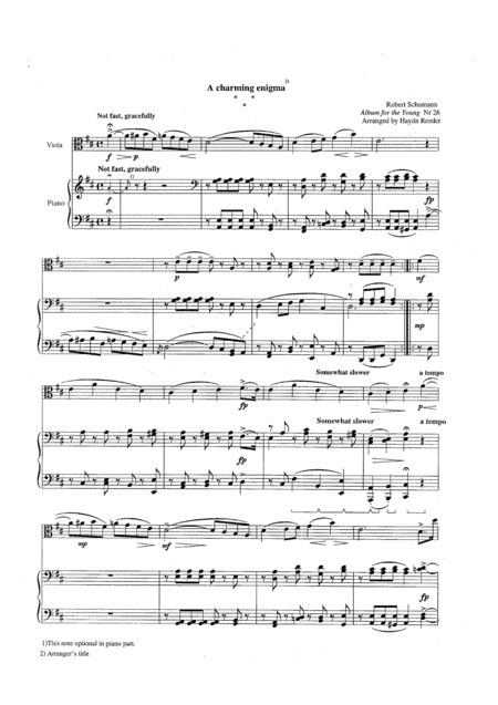 Schumann's A charming enigma for viola and piano (arr. Haydn Reeder)
