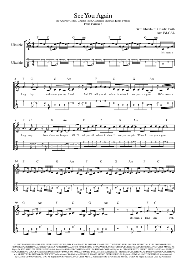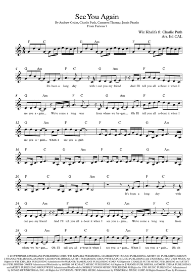 justin franks, cameron thomaz, charlie puth, andrew cedar, wiz khalifa feat. charlie puth, arr. ed.cal