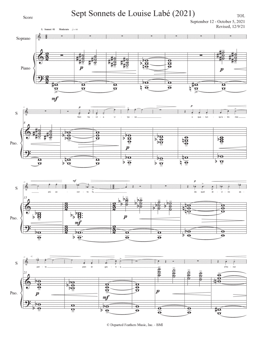 Sept Sonnets de Louise Labé (2021) piano vocal score